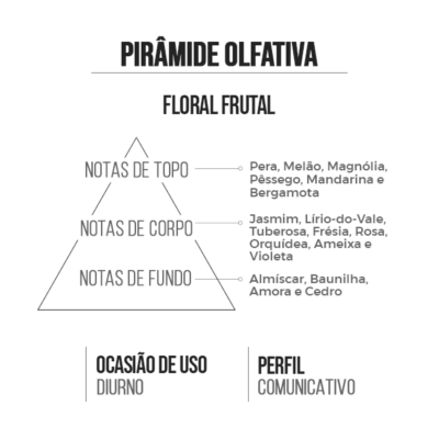 Notas de Topo 🍐🍑🍊: Pera, Melão, Magnólia, Pêssego, Tangerina e Bergamota